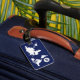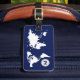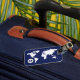 Mapa azul gráfico del mundo con Inicial en círculo... haciendo fácil ver tu equipaje en el carrusel. Con esta etiqueta, puede identificar fácilmente su bolso y añadir un toque especial a su viaje.