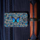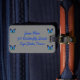 Hermosas mariposas azules sobre un fondo plateado para esta etiqueta de equipaje. personalizar que sea justo para ti.
