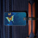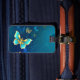 Etiqueta Para Maletas Mariposas doradas sobre fondo azul