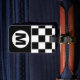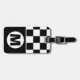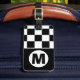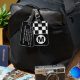 mochila monogramada de estilo retro en blanco y negro con correa de cuero