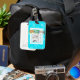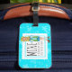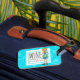 Una etiqueta de bolso/equipaje de colores vivos con una gran declaración sobre la vida y los viajes. Mantengan la calma y sigan adelante.