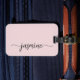 Etiqueta para equipaje personalizada con monograma de nombre y letra script en rosa claro minimalista femenina y elegante. Este diseño presenta su primer nombre en un bonito estilo de letra a mano con tipografía de cola de milano (o caligrafía) sobre fondo rosa polvoriento o rosa claro pastel. Estas son fáciles de personalizar. Regalo femenino elegante para boda, despedida de soltera, graduación, cumpleaños número 16 y para cualquier persona que ame el estilo minimalista limpio.