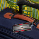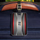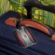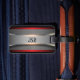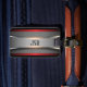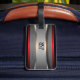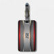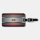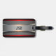 Etiqueta del equipaje con una mirada metálica negra y gris masculina y una frontera roja fina en ambos lados. Añada su monograma o nombre al centro.