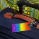 Viaja con esta etiqueta de la bolsa de equipaje de la moda. El diseño purpurina rainbow glam rayped incluye tonos rojos, naranjas, amarillos, verdes, azules y morados con tu nombre para personalizar en escritura blanca. La parte posterior de la etiqueta de la bolsa es negra con los datos de contacto en blanco. ¡Hecho solo para ti por Extreme Tees!
