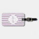 Añade moda y estilo a tu estilo de viaje con esta etiqueta de equipaje de franjas pintadas de color morado y blanco angustiado con luz de moda. Personalice este diseño de lavanda lindo y elegante añadiendo el nombre y el monograma inicial de la joven de moda.