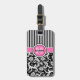 Encuentra fácilmente tu bolsa en el aeropuerto con este mítico patrón de damasco y rayas florales en blanco y negro de moda con un bonito medallón de círculo rosado en la parte delantera que tiene tu nombre y la última inicial. El reverso es todo rosa con letras negras que usted personalizar con sus propios datos de contacto.