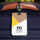 Diseño moderno de etiquetas para equipaje de personalizable con monograma audaz y fondo geométrico.
