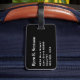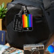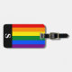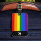 Etiqueta de equipaje con el patrón arcoiris del orgullo lesbiana, gay, bisexual, transgénero (LGBT) con los colores rojo, naranja, amarillo, verde, azul y morado con monograma blanco en una franja negra. Personalice la información inicial, de nombre y de dirección de su monograma utilizando las plantillas más sencillas. El color de fuente, el estilo de fuente y el tamaño de fuente son personalizables.