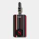 Etiqueta para el equipaje con franjas verticales negras, rojas oscuras y blancas con su monograma. Personalice su monograma inicial e información utilizando las plantillas más sencillas. El color de fuente, el estilo de fuente y el tamaño de fuente son personalizables.