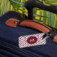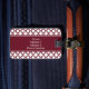 Etiqueta Para Maletas Monograma Burguno y patrón de cuatrefoil blanco