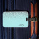 Etiqueta Para Maletas Monograma de brillo azul acuático plateado femenin