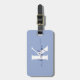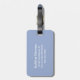 Esta sencilla y elegante etiqueta azul claro para el equipaje con tu nombre en un tipo de letra de guión moderno en azul marino tipeado por encima de tu primera inicial en un tipo de letra moderno en blanco en un lado y tu nombre, dirección y número de teléfono en el otro se vería fabuloso en tus maletas. Es de diseño y a la vez muy clásico.