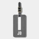 Etiqueta elegante simple del equipaje con el fondo gris de la textura y la raya blanca. Personalizar con su monograma.