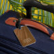 Una etiqueta de equipaje estilizada con monograma impreso en madera falsa rústica. Tenga en cuenta que este diseño utiliza imagen de madera impresa. No se utiliza madera real en la fabricación de este producto.