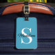 Etiqueta de equipaje robusta e impermeable con fondo azul verde azulado a la moda para personalizar o personalización con un nombre, monograma o inicial de su elección. Elegante, moderno y moderno sello de personalizable para el viajero de moda. Acompáñese a su maleta, mochila, mochila, bolsa de duffel de fin de semana o gimnasio, o continúe con su funda. Donde quiera que estés viajando, una etiqueta única personalizada con hacer que tu equipaje se destaque y sea fácilmente reconocible. Haga clic en el nombre de nuestra tienda para ver más etiquetas de viaje únicas con otros diseños personalizados.