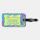 Identifique su equipaje, mochila o bolso de computadora con esta divertida y elegante etiqueta de equipaje con un diseño paisajista colorido y personalizado con su monograma, iniciales o nombre en la parte delantera y para su información de contacto en la parte posterior. Los colores llamativos de este moderno diseño paisley presentan un fondo de lavanda peringuible con una tira verde lima y emblema para la personalización. Los paisajes luminosos, frescos y modernos hacen de un hermoso diseño artístico que incluye palabras inspiradoras de Amor, Esperanza, Fe, Inspire, Corazón, Ser Feliz, Sueño y Vivir en el fondo entre los paisajes. Esta colección de Mod Paisley, diseñada por Phyllis Dobbs, utiliza los colores verde azulados, turquesa, verde limón, vino, amarillo, fucsia y naranja para crear una diversión y capricho sobre el tradicional y popular motivo de paisley. El motivo paisley es intemporal, pero este arte original es a la vez moderno y contemporáneo. Personalizable completo para la personalización con tus propias palabras para añadir tu propio mensaje.
