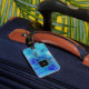 Etiqueta Para Maletas Monograma dorado de manchas de color azul púrpura