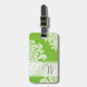 Patrón de damasco blanco bonito sobre un fondo verde de primavera adornado con una cinta y un monograma. Personalice esta etiqueta de equipaje introduciendo su monograma e información de contacto en la plantilla de diseño.