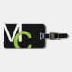 Dos letras grandes en blanco y verde para sus iniciales en un fondo negro.