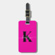 Esta sencilla y elegante etiqueta rosa caliente con tu primer nombre en una fuente de escritura a la moda en blanco tecleada sobre tu primera inicial en un moderno tipo de letra de tapa en negro por un lado y tu nombre, dirección y número de teléfono por el otro se vería fabuloso en tus maletas. Es de diseño y a la vez muy clásico.