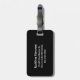 Esta sencilla y elegante etiqueta negra con tu primer nombre en una fuente de escritura a la moda en blanco tecleada sobre tu primera inicial en un moderno tipo de letra en gris en un lado y tu nombre, dirección y número de teléfono en el otro se vería fabuloso en tus maletas. Es de diseño y a la vez muy clásico.