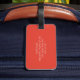 Una sencilla y sutil etiqueta de equipaje de mármol en rojo naranja con una moderna placa cuadrada blanca que se puede personalizar añadiendo su monogramada información inicial y de contacto. Esto es parte de la Colección Monograma de Mármol Subtil Rojo de Tomate de Cereza.