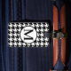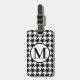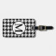 etiqueta de equipajes con motivos en blanco y negro, monogramada, con patas redondas