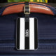 Etiqueta Para Maletas Monograma tres bandas negras en blanco