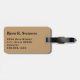 Etiqueta para el equipaje con el nombre o iniciales de un monograma marrón de camello en un marco monograma de tres bandas negras, nombre e información de dirección en un fondo marrón de camello. Personalice con su(s) inicial(s)/nombre, nombre y dirección de monograma utilizando las plantillas más sencillas. El color de fuente, el estilo de fuente, el tamaño de fuente y el color de fondo marrón de camello son personalizables.
