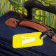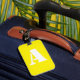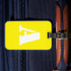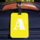 El diseño presenta un fondo amarillo brillante para su monograma con letras claras y estampadas blancas. ¡Hace que encontrar tu equipaje sea un poco más fácil! Disponible en diversos colores.