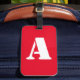 El diseño presenta un fondo rojo brillante para su monograma con letras claras y estampadas blancas. ¡Hace que encontrar tu equipaje sea un poco más fácil! Disponible en diversos colores.