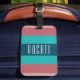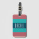 Moda etiqueta de equipaje verde azulado y rayado de borgoña. Personaliza la etiqueta con tu nombre o inicial. El estilo y el color del tipo de letra se pueden personalizar según su estilo personal.