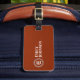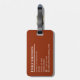 Travel in style with this sophisticated brown leather luggage tag. The classic design features a rich, warm tone reminiscent of fine leather goods, perfect for the discerning traveler. Your name and address details are elegantly displayed in a clean, modern font, ensuring your belongings are easily identifiable. This tag is not just a practical accessory but a statement of refined taste, designed to withstand the rigors of travel while keeping your contact information readily accessible. Make your luggage stand out on the carousel with this timeless and functional piece.