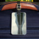 Haga que su equipaje se destaque en un carrusel del aeropuerto con diseños únicos de etiquetas! Esta pintoresca etiqueta para el equipaje presenta un sereno reflejo de estanque bajo las cumbres gemelas de la Montaña Doublehead en las Montañas Blancas de Nuevo Hampshire en colores mudos de azul, plata, blanco, gris y negro. La parte trasera tiene su información personal. Se puede personalizar todo el texto.