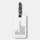 Etiqueta del equipaje con la foto del detalle en un modelo complejo en un mural rojo y blanco.
