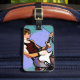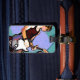 El color abstracto bloqueó al chico y su guitarra. En azul, verde mar y multicolor.