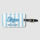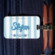Set sail on your next adventure with this personalized nautical luggage tag. Featuring classic blue-and-white Cabana stripes, this design provides a crisp, coastal look for any traveler. The tag clearly displays the custom name text alongside the phrase "This luggage belongs to," accented by a charming anchor-and-lifebuoy motif. It is the perfect way to make your belongings easily identifiable while maintaining a sophisticated, maritime-inspired aesthetic for your suitcase or carry-on.