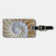 Hermosa en su simetría y elegancia, esta fotografía de detalle muestra la sección transversal de una concha naútica de color blanco perlino, marrón, melocotón y gris-azul. Hay mucho debate sobre si la forma y el patrón de crecimiento de un nautilus es verdaderamente una "espiral dorada" pero, a pesar de todo, es una de las espirales más bellas de la naturaleza. Esta hermosa imagen crea una hermosa etiqueta para sus bolsas de ropa de playa o equipaje de vacaciones. El lado inverso se imprime en un azul suave y se puede personalizar con tu propio texto usando las plantillas fáciles y proporcionadas. Fotografía © CMBarber