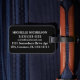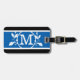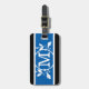 Etiqueta para el equipaje del personalizado con correa de cuero: monograma enmarcado de rama de roble simple sobre fondo de franja azul en negrita