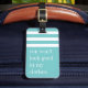 ¡Quita las manos de esa bolsa! Disuadir a los posibles ladrones de equipaje con esta graciosa etiqueta en una vibrante sombra de turquesa que hace que tu bolsa sea fácil de ver. "No te vas a quedar bien con mi ropa" aparece con letras blancas debajo de un borde superior de rayas blancas. Personalice con sus datos de contacto en la parte posterior.