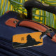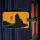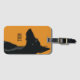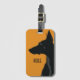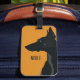 Un diseño minimalista de etiquetas de equipaje para dueños de perros o amantes que ha sido puesto en un fondo amarillo. El diseño presenta una silueta de un Doberman negro acompañado por el personalizable por defecto.