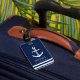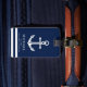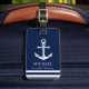 Una etiqueta completo adaptable y diversión del equipaje con un tema náutico único. Ofrece un ancla centrada en el centro y una marina de guerra profunda con todo vibrante y un esquema de color blanco.