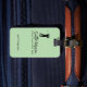 Fondo verde pálido, personalizado con su nombre y palabras personalizadas (nombre del club de golf, un eslogan o cualquier otra información). Un diseño fresco y elegante para que un golfista viaje con estilo.