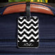 Chevron Stripe Monograma Etiqueta de equipaje en blanco y negro. Personalice con su nombre e iniciales.