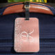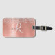 Personalice fácilmente este diseño de diseño de etiquetas para equipaje de moda con un purpurina espumoso de plata bonito sobre un fondo metálico rosa de color dorado.