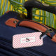 Esta encantadora etiqueta para el equipaje de monograma muestra un primer serif junto con un nombre de guión, lo que la convierte en un accesorio delicioso para ella. Con rayas diagonales rosas y blancas, es el accesorio perfecto para tu equipaje. ¡Elige la tuya!
