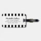 Elegante etiqueta de equipaje con rayas verticales en blanco y negro. Al otro lado del frente hay una banda naranja con texto personalizable. Nombre y dirección del Personalizable en la parte posterior. Diseño elegante y contemporáneo para las mujeres. También disponible en otros colores.