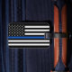 Etiqueta delgada del equipaje de la línea azul - Bandera estadounidense con colores de bandera de la policía, diseño azul negro moderno . Personaliza con el nombre del oficial de policía o el apellido. Esta etiqueta personalizada para el equipaje de los oficiales de policía es perfecta para la policía y las familias de las fuerzas del orden y todos los que los apoyan. DERECHOS RESERVADOS © 2020 Judy Burrows, Black Dog Art - Todos los derechos reservados. Etiqueta personalizada de portaequipajes delgada de la línea azul