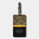 Etiqueta elegante y femenina para el equipaje con tazón amarillo atado lujoso negro oscuro purpurina fondo de cebra