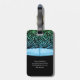 Etiqueta elegante y femenina para el equipaje con tazón azul atado lujoso negro oscuro fondo de cebra purpurina.